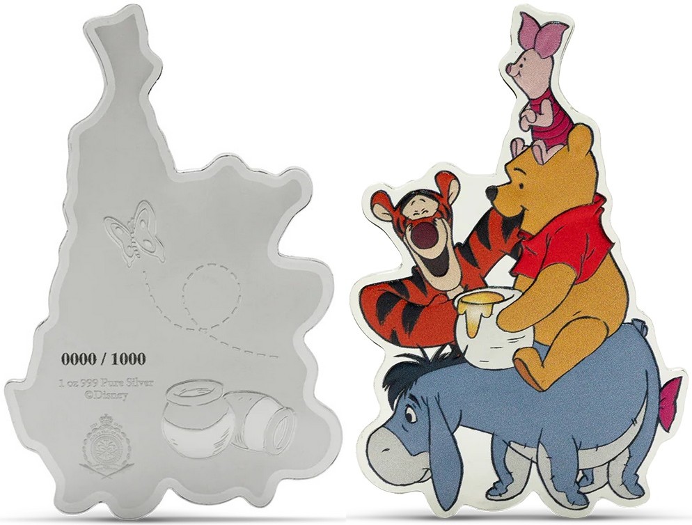 NIUE 2 Dollars 2025 – Winnie the Pooh : Friends Love Hunny Too– 1 oz 0.999 silver Proof – mintage 1,000 – size 69 x 44 mm – price $132.