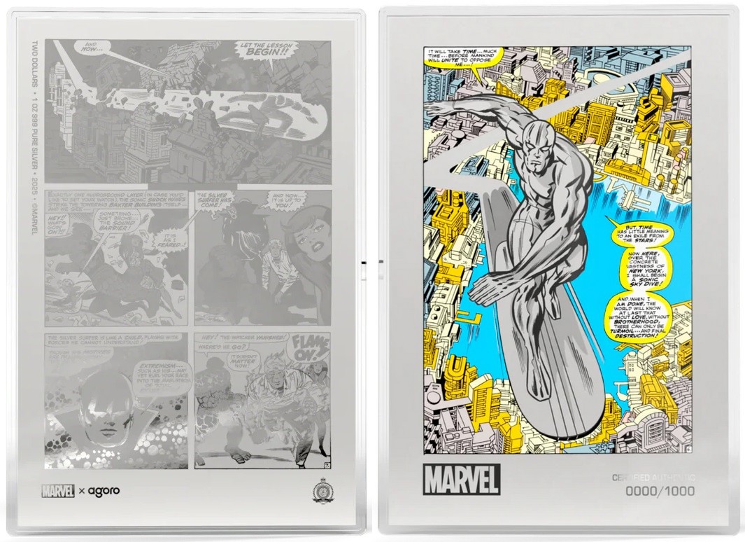 NIUE 2 Dollars 2025 – Marvel : The Fantastic Four #72 Foil – 1 oz 0.999 silver Proof – mintage 1,000 – size 175 x 262 mm – price $167.