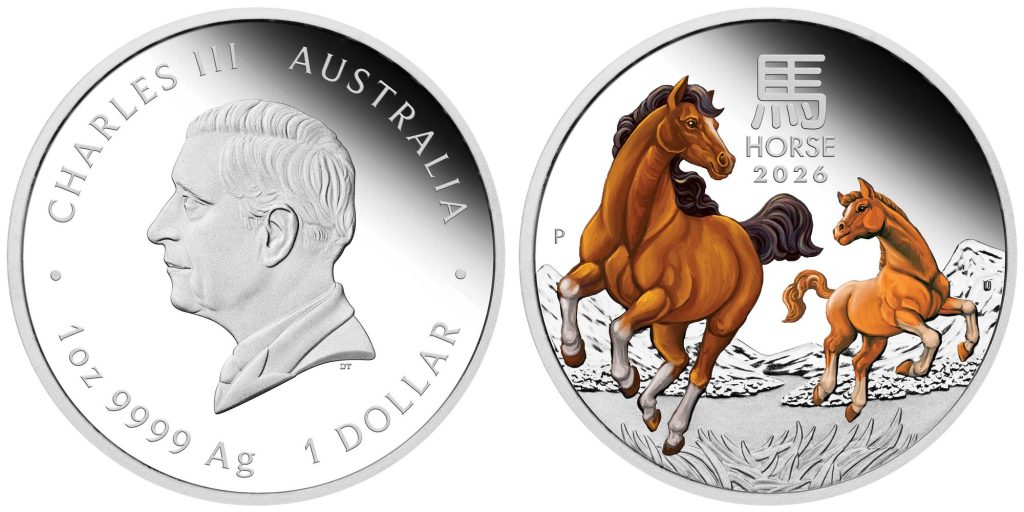 AUSTRALIA 1 Dollar 2026 – Year of the Horse (color) – 1 oz 0.999 silver Proof – mintage 7,500 – diameter 40.9 mm – price $118.