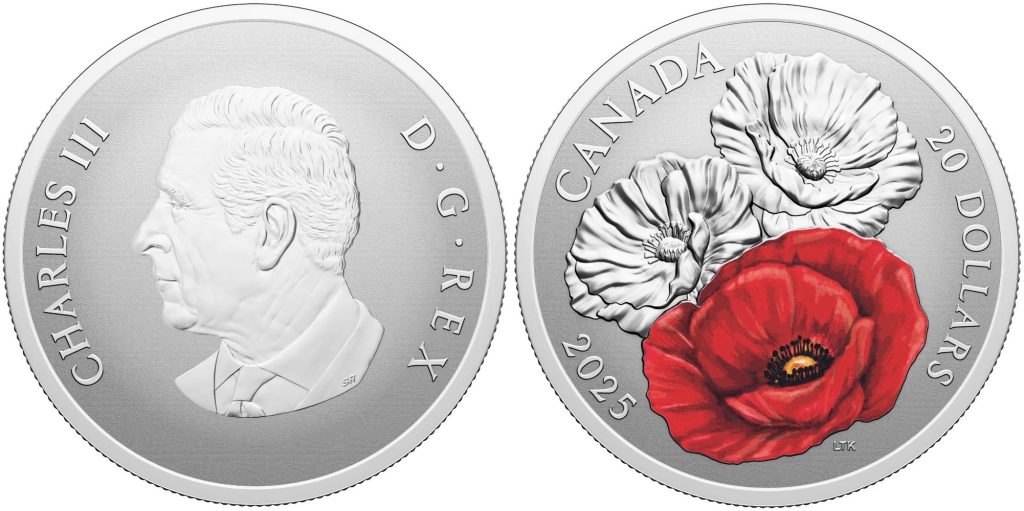 CANADA 20 Dollars 2025 – Jour du souvenir – 31,56 g Argent 999 Proof – 7500 exemplaires – diamètre 38 mm – prix 82,70 euros.