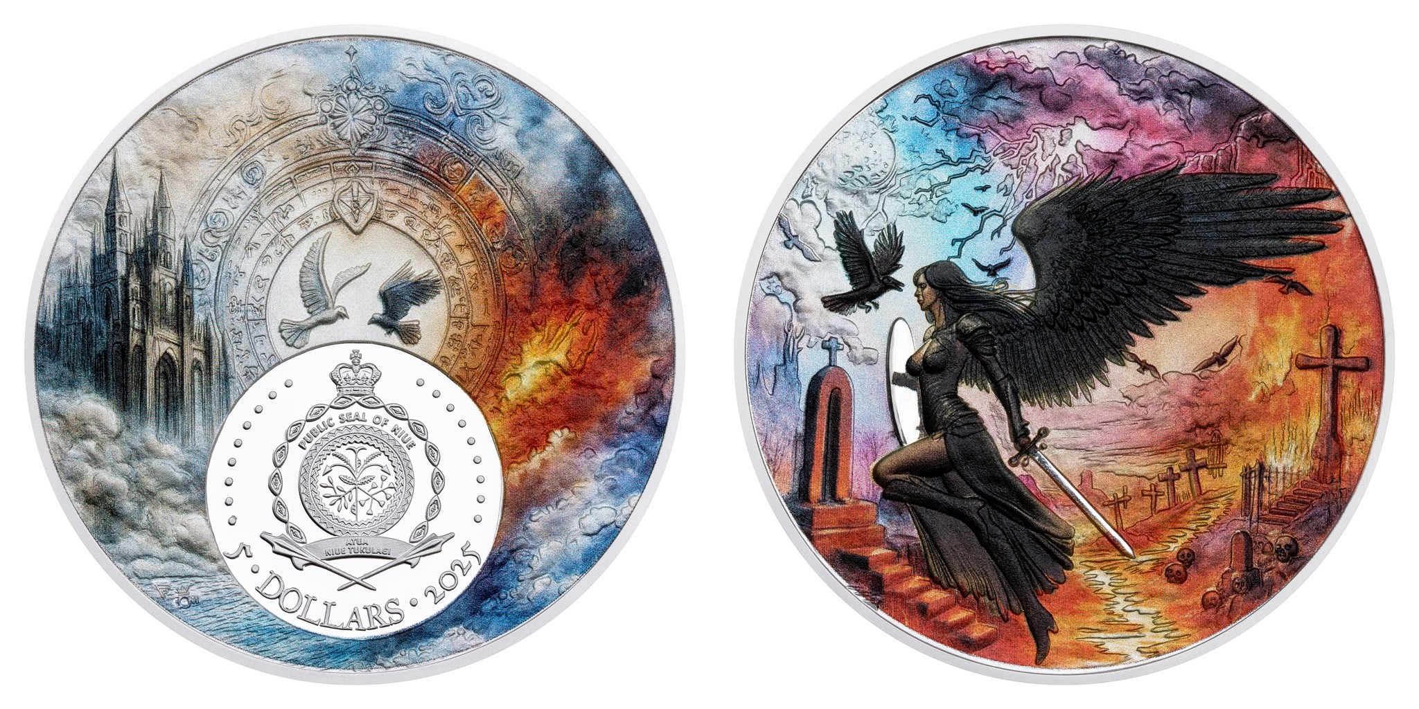 NIUE 5 Dollars 2025 – Battle of Good and Evil : Good – 42 g 0.999 silver Proof – mintage 500 pcs only – diameter 50 mm – price $144.