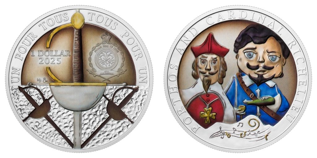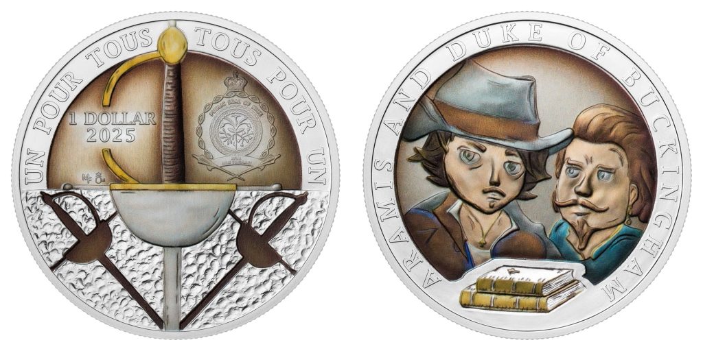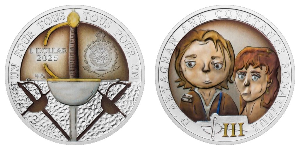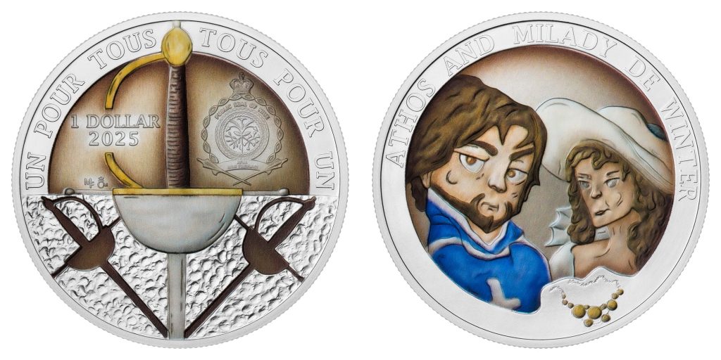 NIUE 4 x 1 Dollar 2025 – The Three Musketeers – 4 x 1 oz 0.999 silver Proof – mintage 300 sets only – diameter 37 mm – set price $433.25.