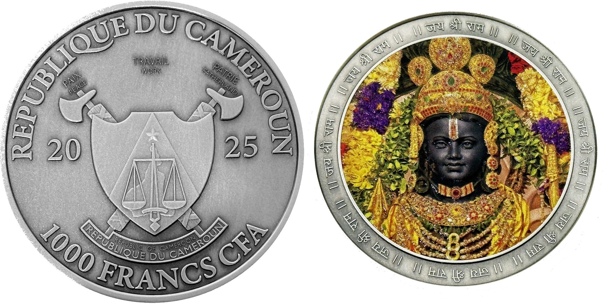 CAMEROUN 1000 Francs CFA 2025 – Dieux hindous : Lord Ram Vishnu – 31,1 g Argent 999 finition antique – 108 exemplaires seulement – diamètre 40 mm – prix ignoré.