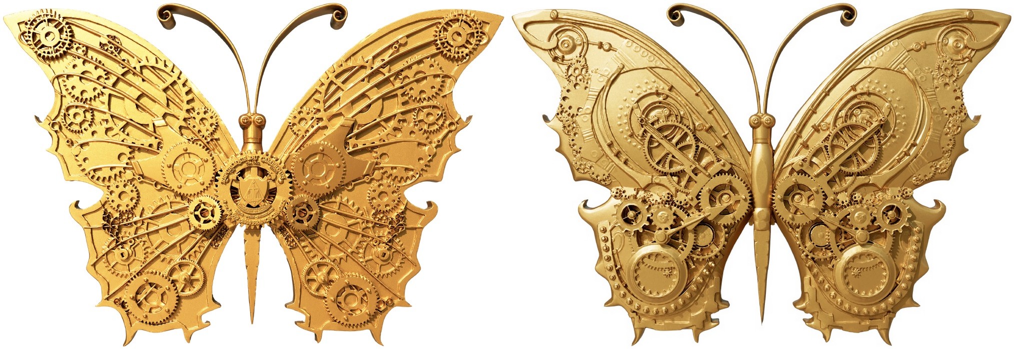 CAMEROON 2000 Francs CFA 2025 – Mech Butterfly – 2 oz 0.999 silver antique finish (gilded react to UV light) – mintage 99 pcs only – size 43 x 65 mm – observed price $392.80.
