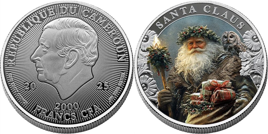 CAMEROON 2000 Francs CFA 2025 – Santa Claus – 1 oz 0.999 silver Proof – mintage 999 pcs – diameter 39 mm – unknown price.