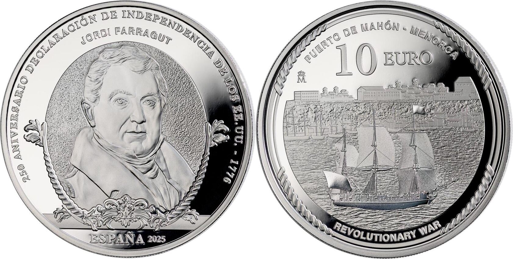 SPAIN 10 Euro 2025 – Jordi Farragut – 2 7 g 0.925 silver Proof – mintage 10,000 – diameter 40 mm – unknown price.