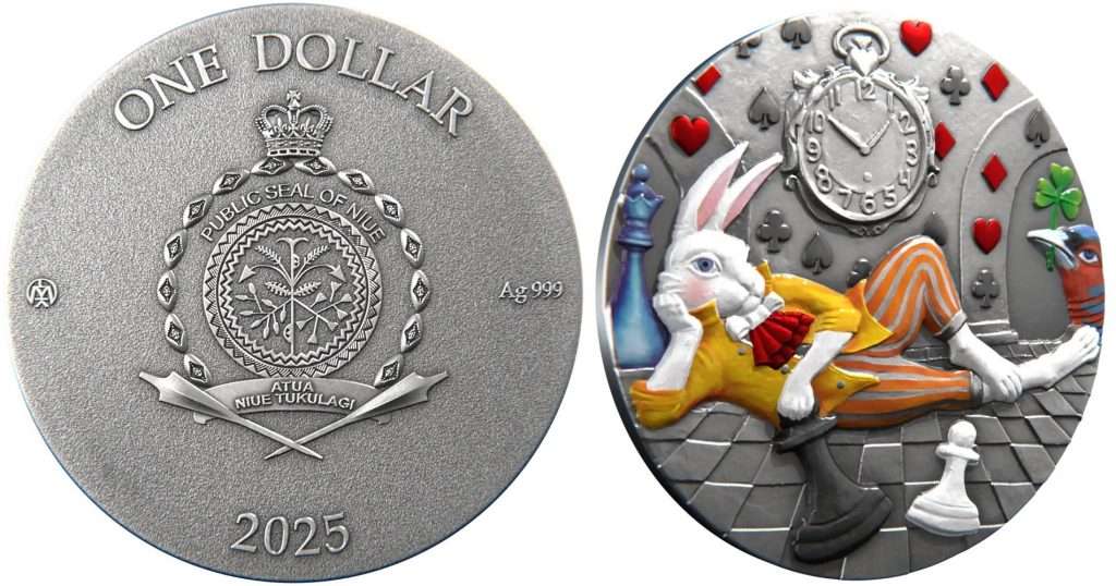 NIUE 1 Dollars 2025 – White Rabbit Rest – 1 oz 0.999 silver Proof-like – mintage 300 pcs only – diameter 40 mm – unknown price.