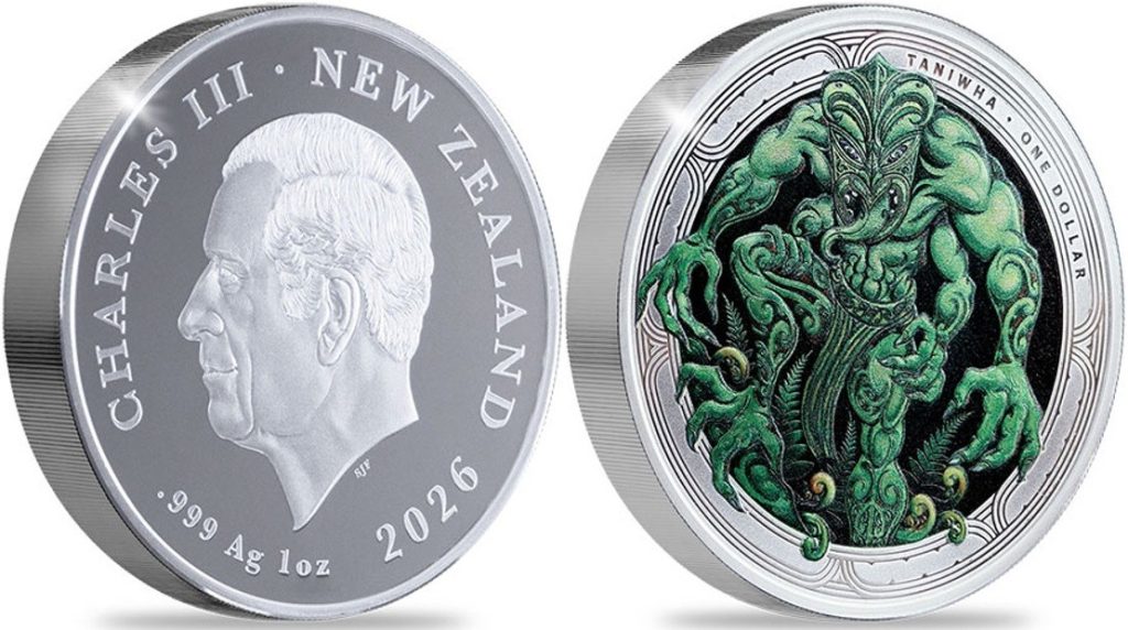 NEW ZEALAND 1 Dollar 2026 – Taniwha Forest – 1 oz 0.999 silver Proof – mintage 750 pcs – diameter 40 mm – unknown price.