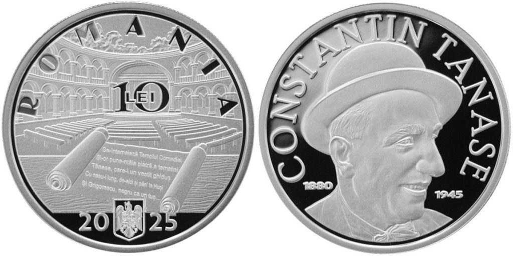ROMANIA 10 Lei 2025 – 145 years since the birth of Constantin Tănase – 31.1 g 0.999 silver Proof – mintage 5,000 – diameter 37 mm – unknown price.