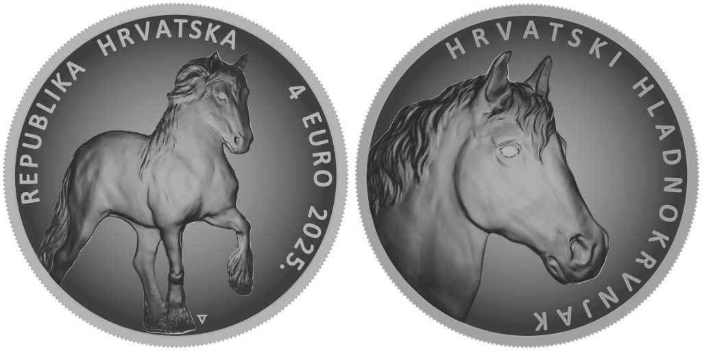 CROATIA 4 Euro 2025 – Croatian Coldblood horse – 1 oz 0.999 silver BU – mintage 1,500 – diameter 38.61 mm – unknown price.