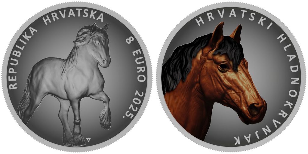 CROATIA 8 Euro 2025 – Croatian Coldblood horse – 5 oz 0.999 silver BU – mintage 300 pcs only – diameter 60 mm – unknown price.