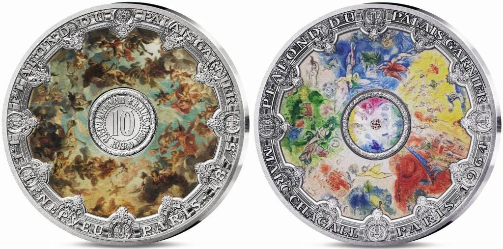 FRANCE 10 Euro 2025 – Plafonds du Palais Garnier – 22,2 g Argent 999 Proof – 3000 exemplaires – diamètre 37 mm – prix 113 euros.