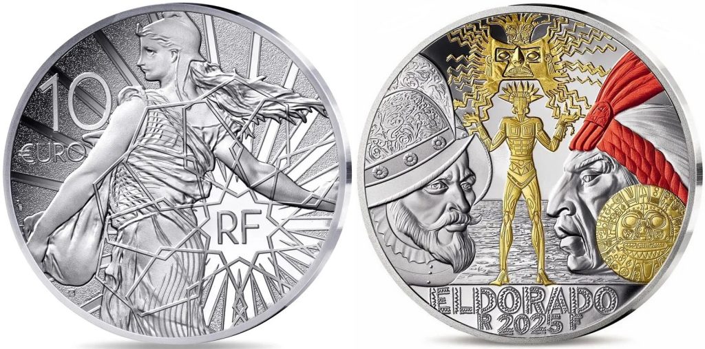 FRANCE 10 Euro 2025 – The Sower : Myths and Wealth , El Dorado – 22.2 g 0.999 silver Proof – mintage 3,000 – diameter 37 mm – price $123.90.
