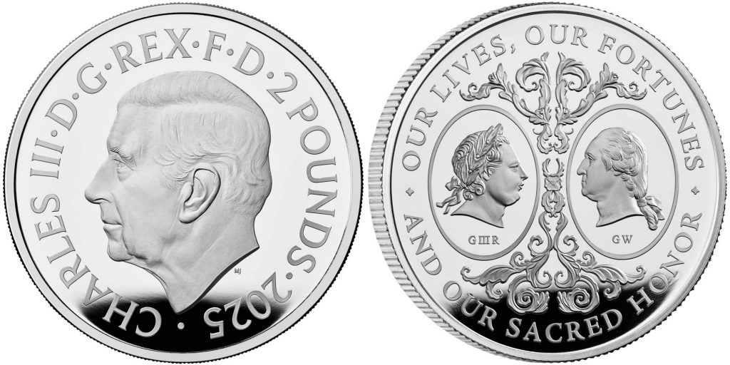 UNITED KINGDOM 2 Pounds 2025 – The Two George – 31.21 g 0.999 silver Proof – mintage 2,010 – diameter 38.61 mm – unknown price. 2 and 5 ounces versions exist.