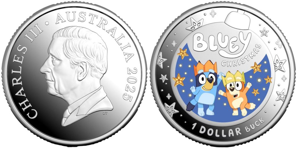 AUSTRALIA 1 Dollar 2025 – Bluey Christmas – 11.66 g 0.999 silver Proof – mintage 10,000 – diameter 25 mm – unknown price.