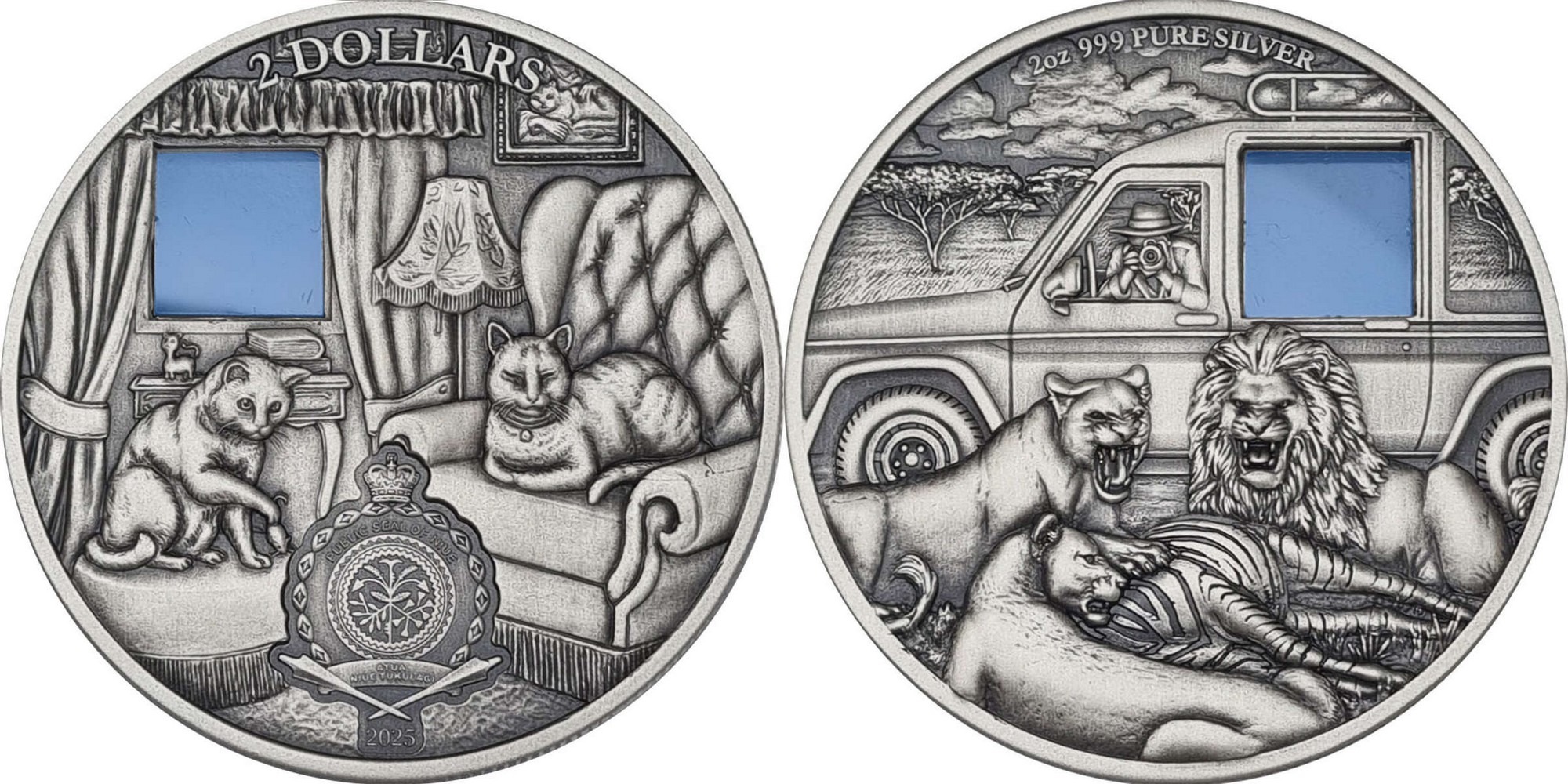 NIUE 2 Dollars 2025 – Feral to Friendly – 2 oz 0.999 silver antique finish – mintage 199 pcs only – diameter 50 mm – unknown price.